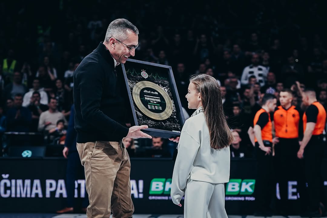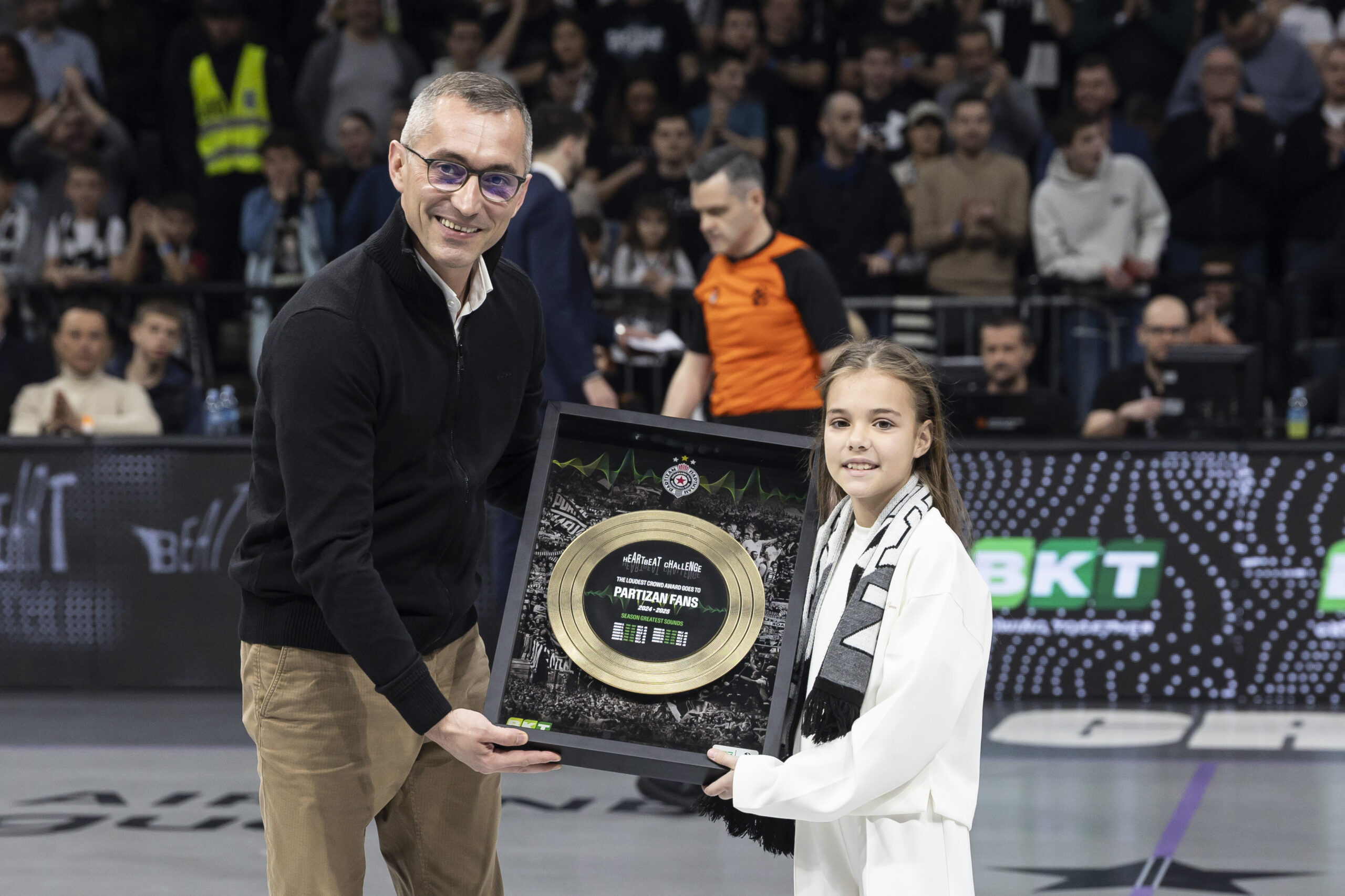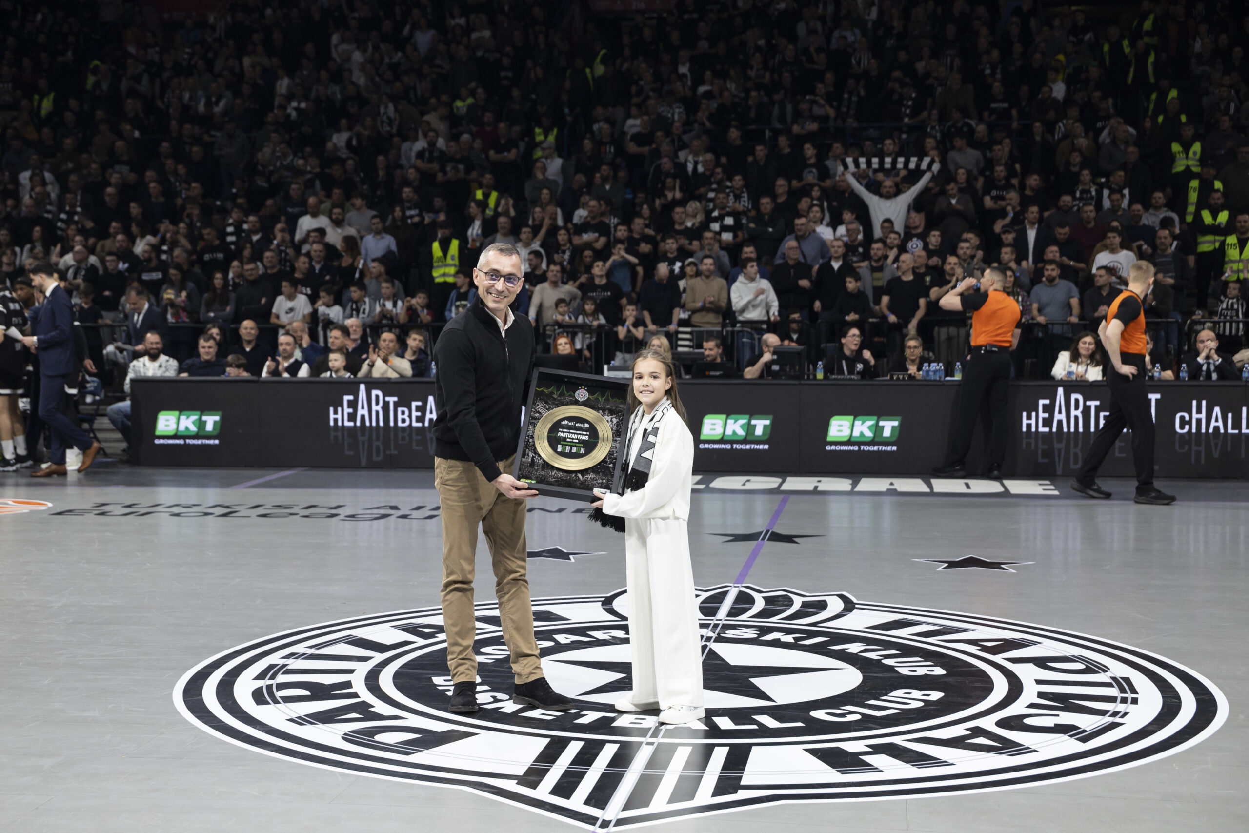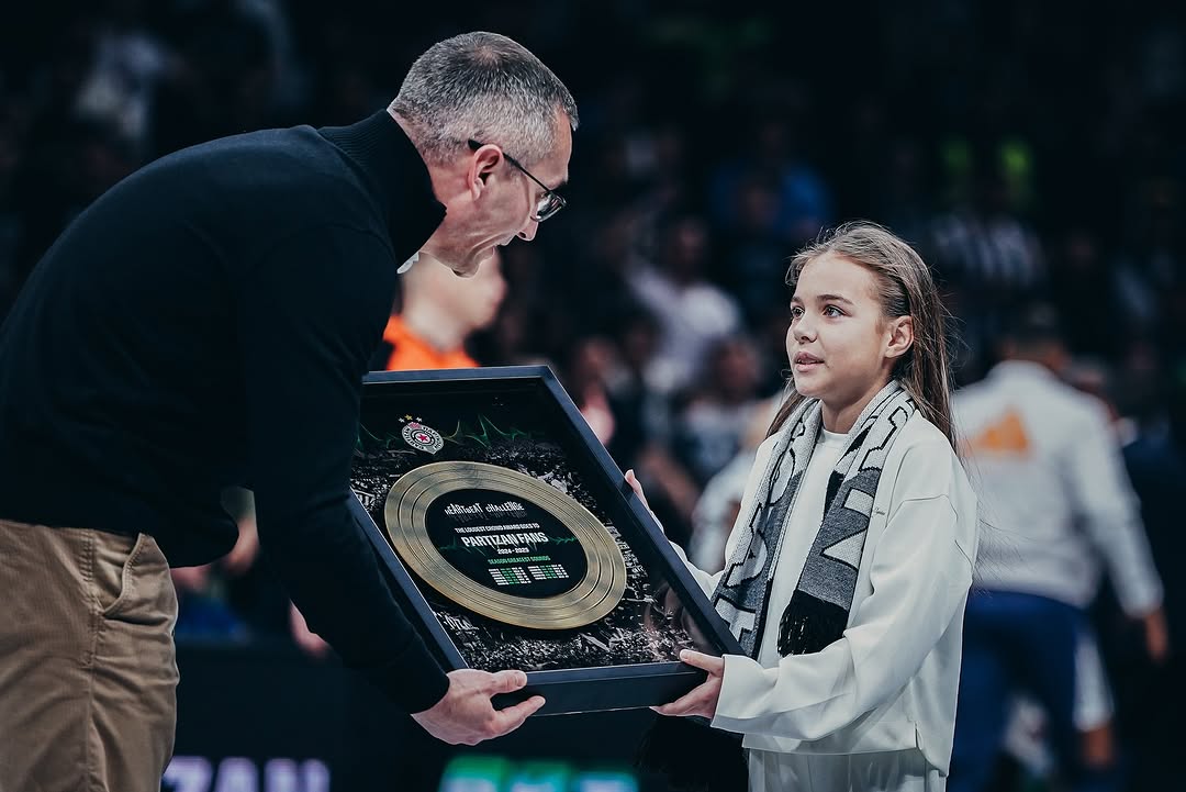 The award–a vinyl with all the rounds won by the fans of Partizan engraved on it, conceived as a kind of gold disk to prompt comparisons with the music industry–was handed over directly to Mina Bezarević, a young 9-year-old fan, who has become a genuine mascot for the fans of her team.